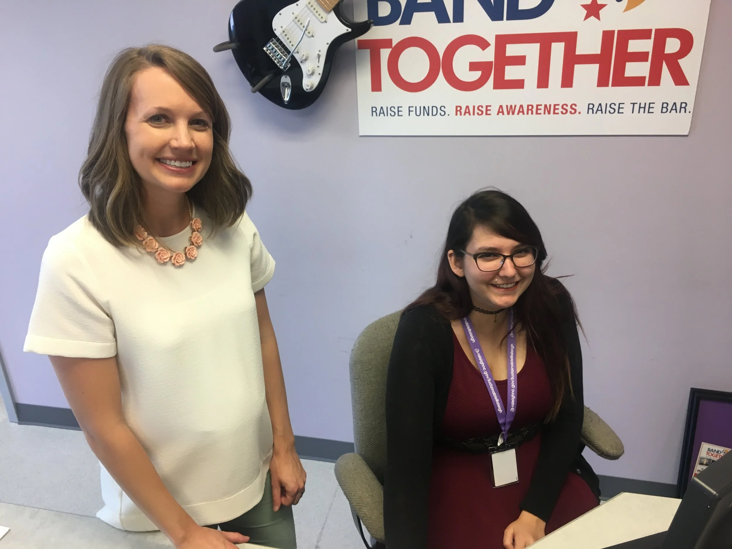 L to R: Sara Pascucci, LPC, and Crystal Rivera, prior to seeing patients in the Purple Pod.